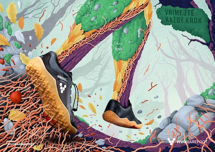 Zlato v kategorii Illustration putovalo do agentury Kaspen/Jung von Matt, který vytvořil ilustrovanou kampaň pro obuv značky Vivobarefoot.Ta byla oceněna ještě stříbrným Louskáčkem v Printu.
