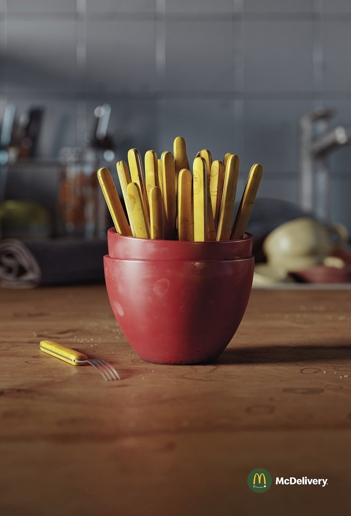Agentura DDB Prague připravila sérii kreativních vizuálů, které propagují rozvozovou službu McDelivery. Haldy použitého nádobí zde nápadně připomínají oblíbené produkty značky McDonald’s. Kampaň v našich porotcích vzbudila chuť na šťavnatvou konstruktivní kritiku i sladká slova chvály. Malý předkrm připravil Milan Vlasák: „Je skvělé shlédnout vyprávění, kde jediný text je název brandu.“ Se slovy chvály přismahnul i Martin Svetlik: „Nejsem velkej fanoušek konceptu ,věci, co vypadaj jako hranolky nebo burger, ale nejsou, protože je to ve skutečnosti chytrá reklama na něco jinýho od mekáče'. Ale tohle je milý a čistě udělaný.“ Sladkou-kyselou tečku za tímto kreativním obědem dává Klára Palmer: „Je to povedený. Jen škoda, že je to festivalovka, jak vyšitá.“