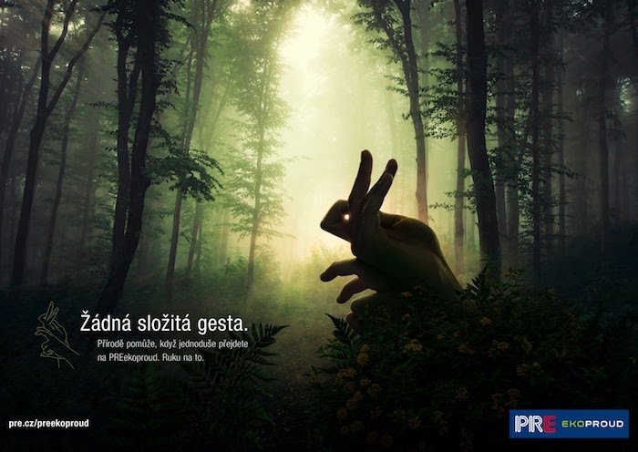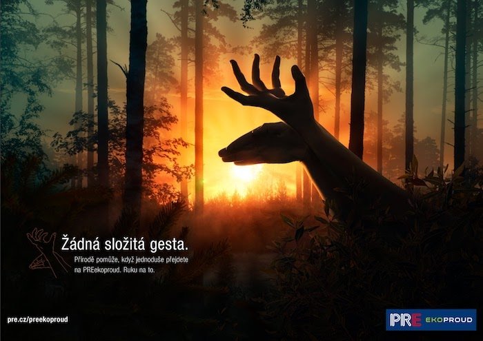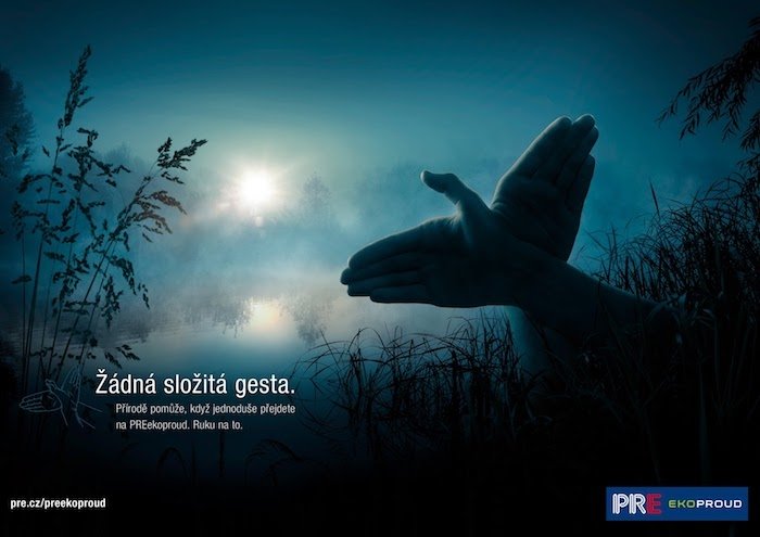 PRE ve své kampani na PREekoproud pomocí stínohry říká, že „nemusíte dělat žádná složitá gesta, abyste pomohli chránit životní prostředí. Koncept pochází z dílny agentury WMC/Grey a Guts Prague. Vizuály nafotil Adam Bartas.