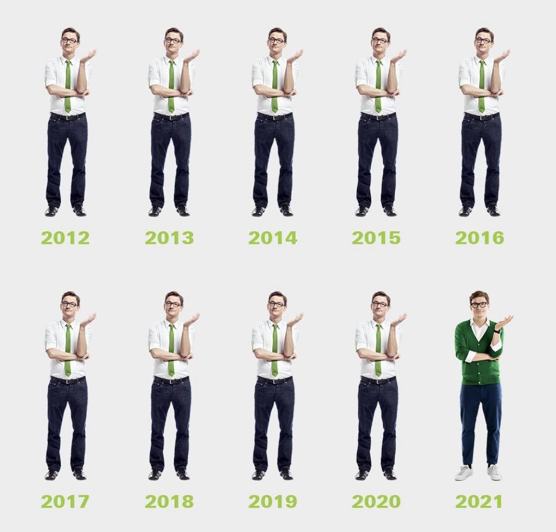Zajímavostí je, že v aktuální kampani změnil bankéř Air Bank po letech šatník. Nově se představuje ve volnočasovém outfitu.