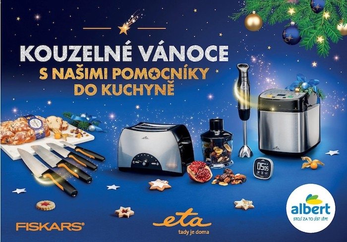 „V Albertu víme, jak jsou Vánoce hektické a přípravy dobrých pokrmů zaberou spoustu času. Proto jsme mysleli na zákazníky a snažili se jim letošní pečení trochu usnadnit. Ve sběratelské kampani tak nechybí ponorný mixér, kuchyňský robot, ruční šlehač, nerezová varná konvice nebo pekárna,“ komentuje kampaň Kateřina Hanušová z oddělení marketingu obchodů Albert. Produkty českého výrobce domácích spotřebičů Eta mohou zákazníci získat se slevou až 58 % a vybírat mohou z 10 položek.