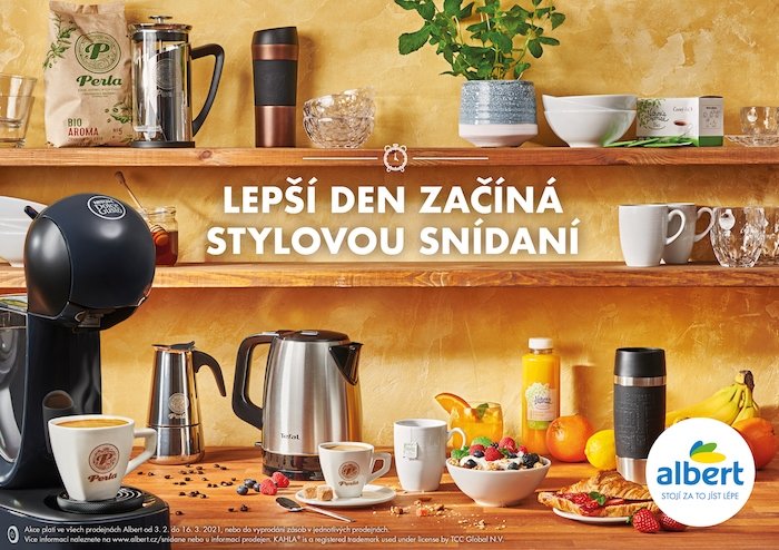 „Ráno dělá den a bez kávy si jej umí představit málokdo. Proto jsme se rozhodli zákazníkům jejich vstávání vylepšit. V naší kampani najdou nejlepší pomocníky na přípravu stylové snídaně,“ vysvětluje Renata Zákravská z oddělení marketingu obchodů Albert a doplňuje „Hrnek a sklenici na přípravu kávy jsme navrhli ve stejném stylu, jako je naše exkluzivní značka kávy Perla, která je u zákazníků velice oblíbená.“