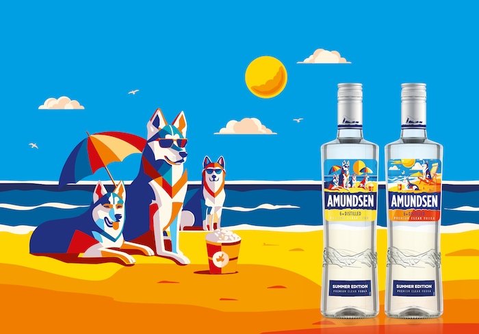 Značka Amundsen přináší na trh novou letní edici vodky. Etikety pro ni nechala navrhnout umělou inteligenci. Ta dostala zadání vytvořit motiv, který by reflektoval letní atmosféru ve Skandinávii, jak značka Amundsen tráví léto, a jak by to vypadalo, kdyby i Amundsenští husky naslouchali svému šestému smyslu.