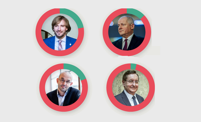 Všechny čtyři ministry hodnotili diskutující velmi negativně. Největší počet negativních komentářů padlo ve sledovaném období o Petru Arenbergerovi. Uživatelům sociálních médií se nelíbily Arenbergerovy údajné podvody s majetkem, na základě kterých Arenberger z funkce ministra zdravotnictví odstoupil. Uživatelé také kritizovali ministrův přístup k vakcíně Sputnik V. V tomto ohledu naopak hodnotili pozitivně exministra Jana Blatného, který odmítal očkovat neprověřenými vakcínami. U Jana Blatného uživatelé také zmiňovali, že měl nejtěžší pozici ze všech čtyř ministrů zdravotnictví. V době, kdy byl Blatný v čele tohoto resortu, se totiž Česká republika nacházela v nejzávažnější části boje s epidemií koronaviru.
