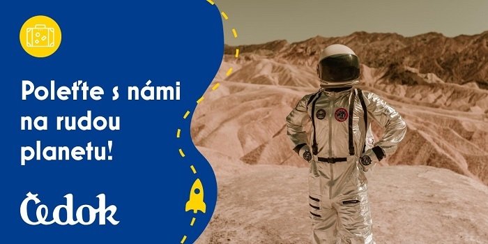Čedok oznámil, že zahajuje prodej zájezdů na Mars. „Zájem o naše poznávačky raketově roste, není divu, ale co když už jste všude byli? Máme pro vás novou exotickou destinaci! Nenechte si ujít tuhle dubnovou nabídku a rezervujete na webu," láká zákazníky.