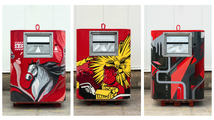 Při návštěvě loňského Designbloku si mohli návštěvníci cestou k Průmyslovému paláci všimnout mimo jiné i pokreslených červených kontejnerů s nápisy typu „Třiď odpad! Budeš navěky in!“ nebo „Nejlepší design odpadu? Třídění!“. Kontejnery byly sice vystavené venku, ale u přehlídky designu na téma „Budoucnost“ dávaly svou připomínkou recyklace smysl. A navíc svými kresbami přitahovaly pozornost.