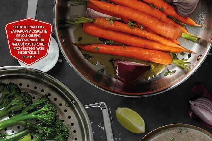 Kolekce MasterChef obsahuje celkem osm výrobků, jedná se například o skladovací boxu do lednice, mísy na mixování, dva druhy kastrolů, tří druhy nepřilnavých pánví či rendlík. Nádobí je vhodné pro všechny varné desky, včetně indukční, a má tělo, dno i rukojeť z nerezové oceli. Získat je lze se slevou od 68 do 73 % za dostatečný počet nálepek, které zákazníci získávají za každý nákup v minimální hodnotě 250 korun.