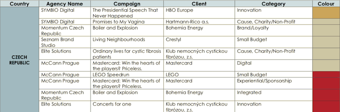 Na počet cen byla nejúspěšnější agentura McCann Prague, jež si vysloužila tři ocenění. Po dvou si odnesly Momentum, Elite Solutions a Symbio, jež získala jediné české zlato, a to za kampaň „Prezidentský projev, který se nikdy nestal“, kterou vytvořila za použití technologie deep fake pro propagaci nového seriálu HBO Bez vědomí.