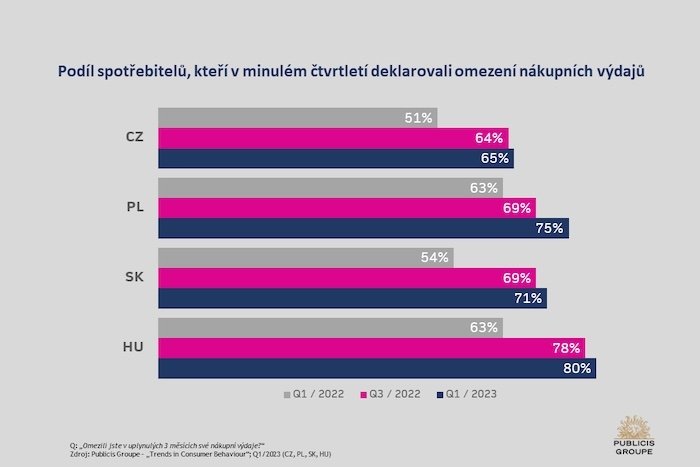 Ve srovnání s dalšími zeměmi střední Evropy Češi šetří i nadále nejméně. Na Slovensku uvedlo snížení výdajů 69 %, v Polsku 75 % a v Maďarsku dokonce 80 % obyvatel. Polsko je také jedinou zemí, kde podíl spotřebitelů deklarujících omezení nákupních výdajů dál výrazně roste