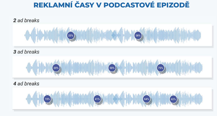 V našem případě je to pět variant, které ve vydavatelství nabízíme. Partnerská epizoda, host-ad neboli inzertní okénko, které je dlouhé klidně až deset minut. Klasické 30s jingly, cross promo epizody a pak dlouhodobý branding podcastu, který nabízíme na kvartál, půl rok nebo celý rok.