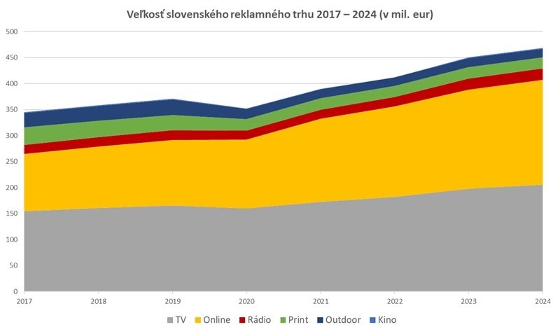 Online bol druhým najsilnejším mediatypom so 190,6-miliónovým objemom reklamy. Toto číslo obsahuje aj investície slovenských zadávateľov do Facebooku či Googlu.