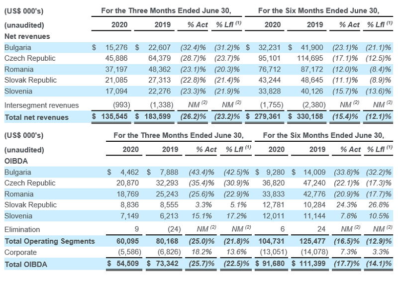 Výnosy společnosti Central European Media Enterprises (CME) na českém trhu, kde provozuje stanice skupiny Nova, klesly ve druhém letošním čtvrtletí o 29 % a celkově dosáhly 45,9 mil. USD (cca 1,1 mld. Kč). Pokud by se zohlednil letošní kurz koruny k dolaru na loňské výsledky, je meziroční pokles na úrovni 24 %. Za období celého prvního pololetí 2020 se výnosy CME na českém trhu meziročně snížily o 17 % na 115 mil. USD (cca 2,65 mld. Kč).