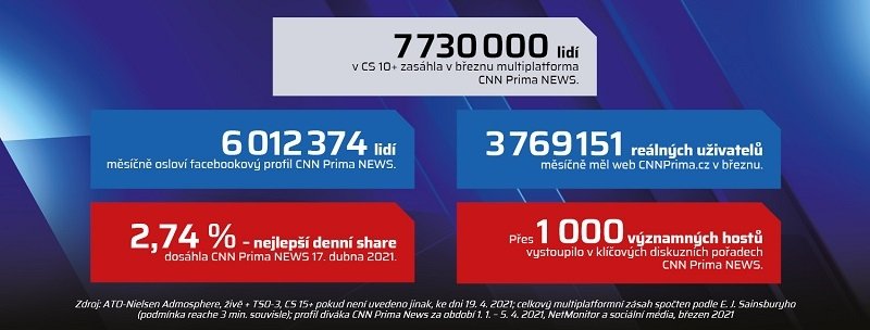 To se zatím obtížněji posuzuje, protože nemáme tolik stabilizované publikum. Televizní podíl CNN Prima News se zvyšuje a spolu s tím se proměňuje i publikum. Z dat, která máme k dispozici, plyne, že zastoupení mužů je v případě značky CNN Prima News vyšší než například u hlavního kanálu skupiny Prima a také že jsou tato publika bonitnější. Zpracováváme detailnější analýzu, jak se prolínají publika u televizní a internetové CNN Prima News. Víme, že celkový zásah celé multiplatformy CNN Prima NEWS – tedy internetu, televize a sociálních sítí – dosáhl v březnu 7,7 mil. uživatelů.