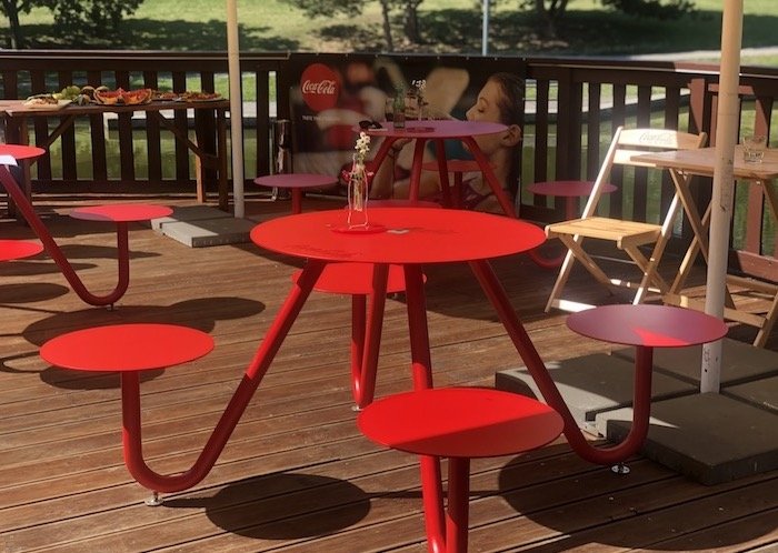 Ve spolupráci s iniciativou Gastro žije! vytvořila Coca-Cola také funkční nábytek Stoolky, který dodržuje u hostů předepsanou vzdálenost. Kulaté stolky se čtyřmi nebo šesti místy k sezení jsou vyrobeny z hliníků a železa, jsou snadno dezinfikovatelné a štosovatelné na sebe.