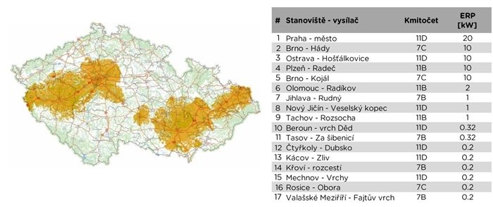 Celoplošnou komerční síť pro rádiové vysílání v digitálním standardu DAB zprovoznily České Radiokomunikace. Jako první v nich vysílají stanice Radio United Broadcasting.