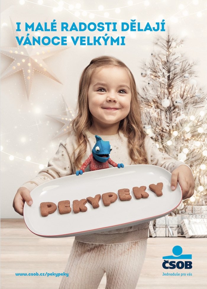 V pondělí 12. prosince ČSOB spouští speciální vánoční kampaň. Její hlavní hrdinka se svým přáním „peky peky“ připomíná, že vánoční svátky nemusí být jen o velkých a drahých dárcích, ale že i maličkosti mohou vykouzlit ty nejkrásnější Vánoce. K vidění bude v televizi, na internetu a na pobočkách.