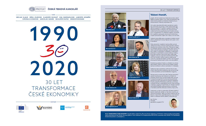 Česká tisková kancelář (ČTK) vydává ve svém PR servisu Protext speciální tištěný i online magazín „30 let transformace české ekonomiky”. Klíčovými autory speciálu jsou bývalý ministr financí, později premiér a prezident Václav Klaus, jenž vzpomíná na první léta změny hospodářského prostředí, místopředsedkyně Evropské komise Věra Jourová a předsedkyně Národní rozpočtové rady Eva Zamrazilová, které se na transformaci dívají z odstupu a na základě analýz.
