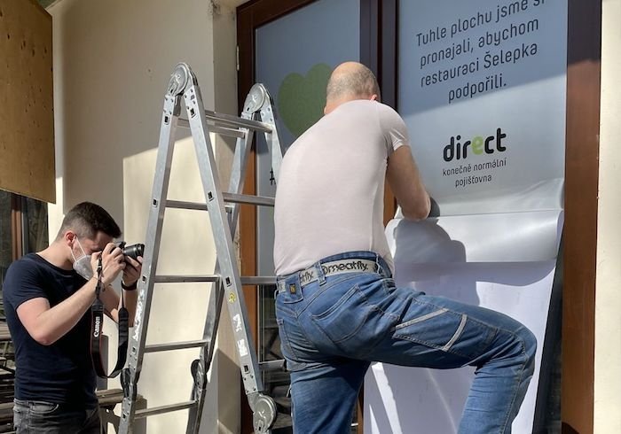 Direct pojišťovna se rozhodla podpořit vybrané zavřené restaurace a kavárny měsíčním pronájmem jejich výloh. Vynaloží na to peníze, které má určené na reklamu.