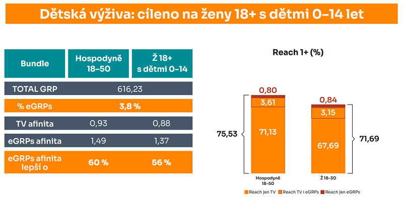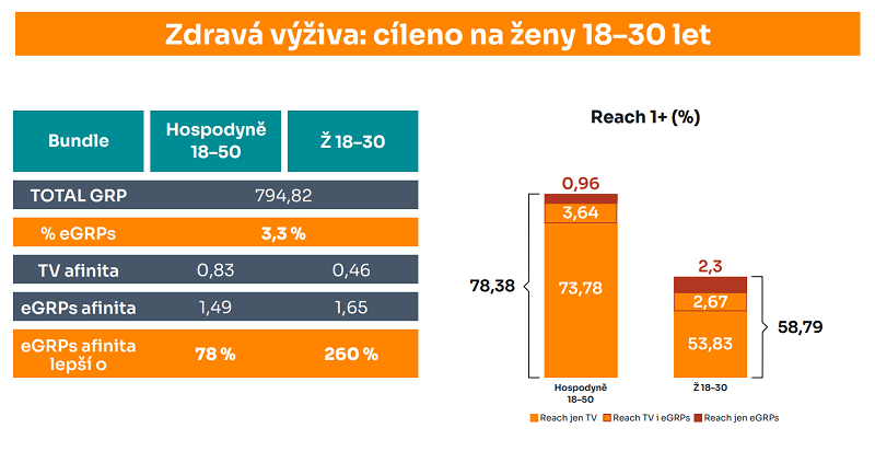 Obchodní zastupitelství Media Club na začátku roku 2022 zařadilo část online video prostoru (digitálních eGRPs) do TV balíčků. Slibuje si od toho maximalizaci zásahu a vylepšení afinity kampaní ve vybrané cílové skupině. „Například u produktu zdravé výživy, který byl cílen na ženy 18–30 let, jsme celkem v únoru odbavovali 795 GRPs a z toho 3,3 % tvořily eGRPs. Jejich afinita na tuto cílovou skupinu byla o 260 % lepší,“ říká Petr Hatlapatka, vedoucí online prodeje v Media Clubu.