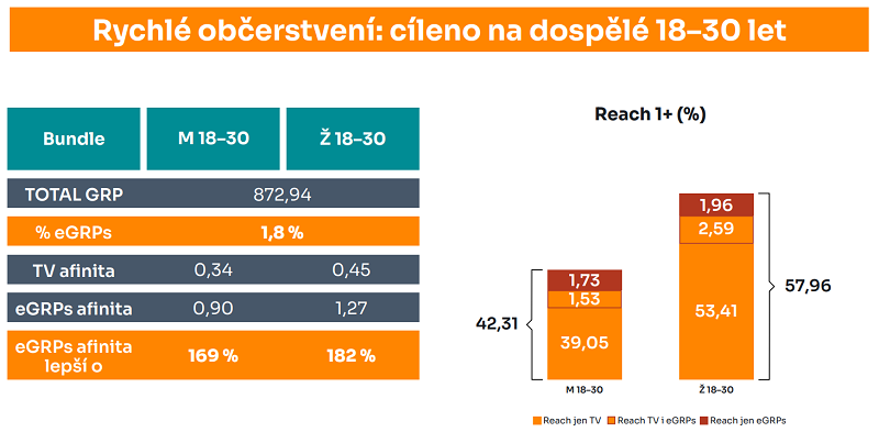 Z eGRPu profitují především klienti, kteří cílí na skupinu 15–35 let. V případě skupiny 35–55 let, která je silná v televizní sledovanosti, už přídavek k celkovému zásahu není takový.