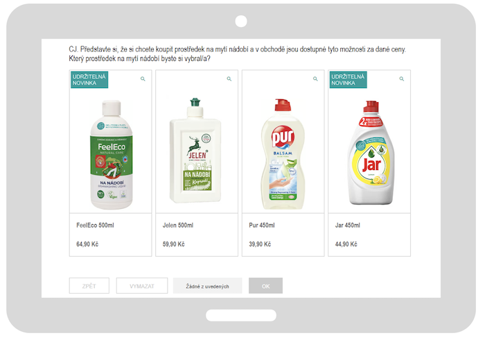 V rámci experimentu, v němž bylo 883 lidí obstarávajících nákupy do domácnosti, bylo vyzkoušeno, o jaké značky s udržitelným sdělením mají spotřebitelé zájem. V nabídce byly čtyři prostředky na mytí nádobí: udržitelná novinka v obalu z plastu recyklovaného z oceánu od Jaru, udržitelná novinka značky FeelEco, dále produkty značek Jelen a Pur. Za udržitelný obal byli lidé ochotni připlatit si 1–5 % z původní ceny. Nicméně u Jaru, jež staví svůj positioning především na efektivitě, by to „pohodlná většina„ očekávala skoro zadarmo. Menší značky na takovém obalu dokáží vydělat více.
