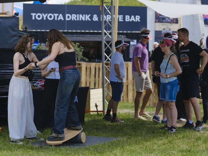 Toyota, jež byla na Rock for People již třetím rokem hlavním partnerem pro mobilitu, zajistila nejen dopravní servis pro účinkující a VIP hosty festivalu svou nízkoemisní flotilou, ale v rámci své zóny představila i svou Toyotu C-HR plug-in hybrid, nabídla rovněž bezplatné dobíjení telefonů v charge boxech, posezení, silent disco i nealkoholické bary. „Vnímáme stále klesající trend spotřeby alkoholu zejména mezi mladými, kteří se už umí bavit i bez něj. Přístup mladých lidí k alkoholu se mění a když si dají dobrý nealko míchaný drink nebo pivo, mají pak i možnost odjet domů bezpečně autem,“ vysvětluje důvody tohoto propojení Michal Velička, marketingový manažer Toyota ČR.