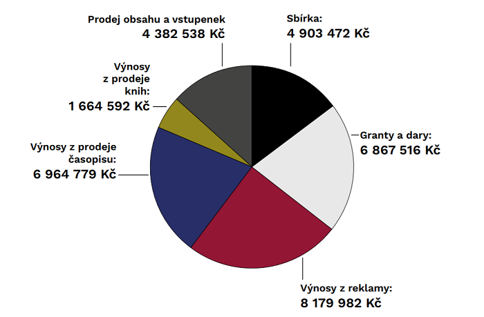 Společnost Forum 24 tak potvrdila kladné hospodaření třetí rok po sobě. Na celkových příjmech se největší měrou podílejí výnosy z reklamy (přes 8 mil. Kč) a výnosy z prodeje časopisu (téměř 7 mil. Kč). Důležité jsou i granty a dary, které v loňském roce představovaly téměř 6,9 mil. Kč.