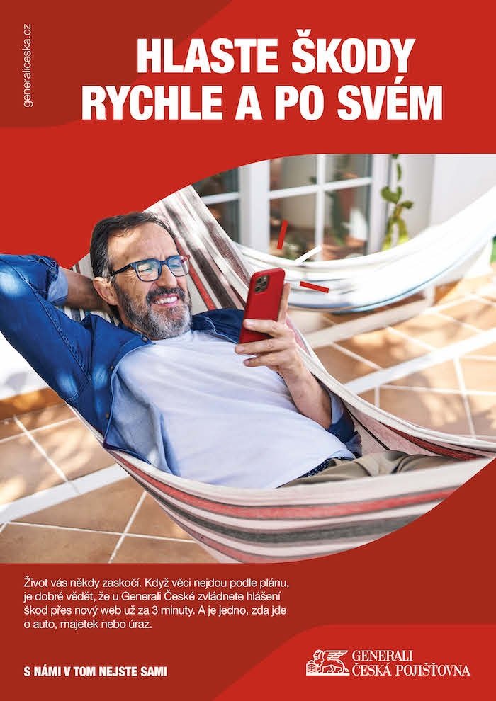 „Klientům v rámci této kampaně představujeme náš nový web, který jim zásadním způsobem usnadňuje hlášení škodních událostí – zvládnou to přes něj rychle a jednoduše, protože potřebují jen své rodné číslo, e-mail a telefonní číslo,“ přibližuje inovace Zdeněk Mrkva, Head Of Marketing Communications Generali České pojišťovny, a dodává: „Nahlášení škody mohou zvládnout už za tři minuty a vystačí si klidně pouze s telefonem připojeným k internetu.“