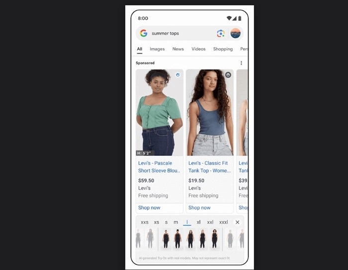 Funkcionalitu tvorby 3D obrázků představil Google už v loňském roce. V současnosti rozšiřuje tuto možnost i do reklamy. Rovněž virtuální vyzkoušení zboží testoval Google od loňského roku, teď ho poprvé zavádí pro vyzkoušení zboží pánského a dámského „horního" oblečení. Zákazníci tak uvidí, jak produkty vypadají na různých postavách a tvarech těla.