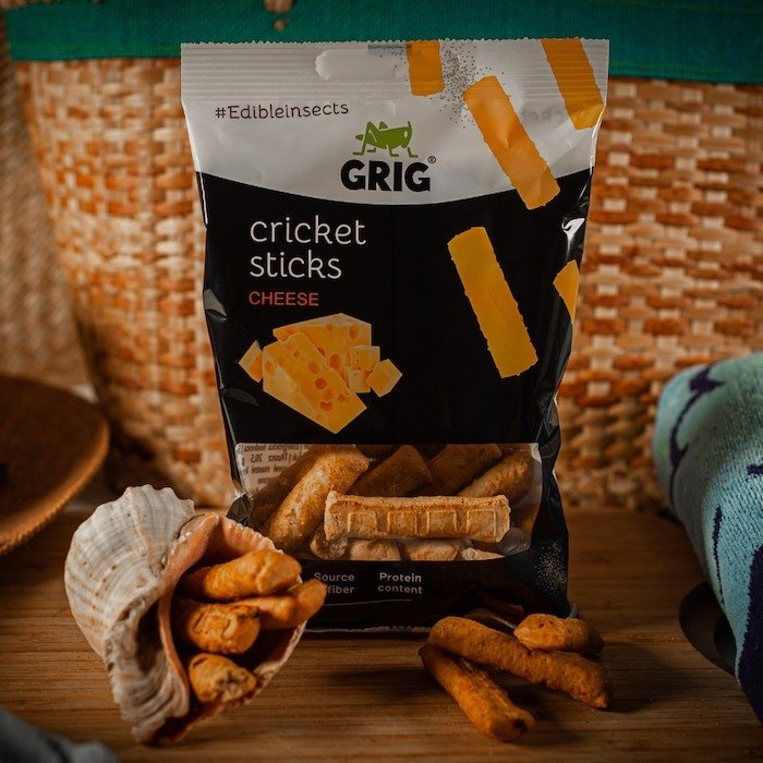 Česká značka Grig se specializuje již pátým rokem na potraviny z jedlého hmyzu. Nabízí sušený hmyz, cvrččí chipsy a krekry, tyčinky, hmyzí čokoládu i těstoviny. Jejím cílem je vyrábět z jedlého hmyzu ten nejlevnější zdroj živočišného proteinu v Evropě a udělat z hmyzu „víc jídlo“, tedy přijít s potravinami, které lidem nahradí každodenní klasické jídlo, jako je oběd či večeře, například ve formě burgeru či omáčky na špagety.