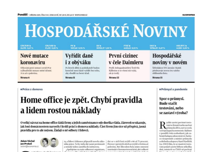 Hospodářské noviny vycházejí od pondělí v novém designu. Další změny