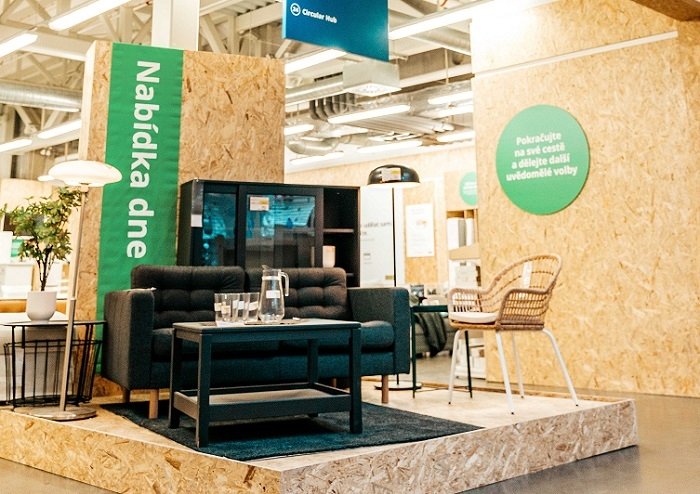 V rámci cirkulární ekonomiky provozuje Ikea na všech OD cirkulární huby, kde nabízí použitý nábytek. Ten se tam dostane přes službu Druhý život nábytku a podle Petra Šaška zpravidla velmi rychle najde nového kupce, v průměru za dva dny. Ročně této služby využije kolem tisícovky zákazníků. V nejbližší době pak Ikea plánuje zpřístupnit nabídku cirkulárních hubů i online. Zákazníci se tak budou moci na webu podívat, jaké výrobky nabízí cirkulární hub v konkrétním obchodním domě, a rovnou si je budou moci zarezervovat. Podíl online prodejů na tržbách tvoří téměř 40 % a stále roste.