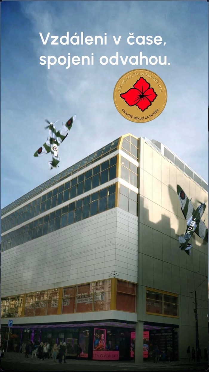 U příležitosti mezinárodního Dne válečných veteránů, který se slaví 11. listopadu, vyslala občanská iniciativa Civilisté děkují, kreativní agentura Safranada v čele s Otou Klempířem a obchodní dům Máj jako poctu a poděkování do nebe stíhací letouny Supermarine Spitfire, které sloužily v RAF a v letectvech dalších spojeneckých armád během druhé světové války.