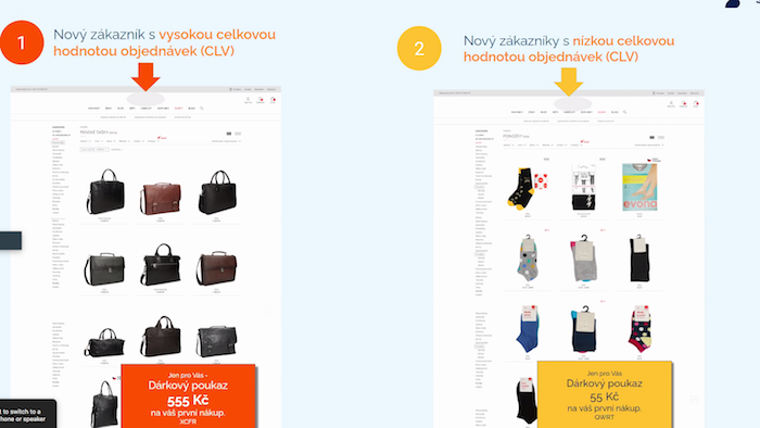 Tomáš Šalamoun, CEO z firmy Incomaker, hovořil o jejich nástroji, který vytváří inteligentní automatizaci digitálního marketingu. Sbírá data z e-shopů a webů a s využitím umělé inteligence automaticky nabízí produkty a obsah zákazníkům prostřednictvím řady kanálů, jako je email, SMS, sociální sítě, push notifikace a také personalizuje obsah samotného e-shopu. „Dokážeme personalizovat nabídky, individualizovat obsah a komunikovat pak napříč různými kanály a personalizovat e-shop. Zákazníkům jsme pak schopni víc prodat a vygenerovat víc konverzí, a to vše automaticky,“ popsal možnosti tohoto nástroje Šalamoun.