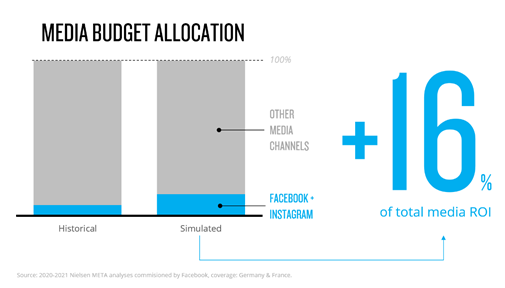 U odlišných odvětví a značek se mohou nejvýkonnější marketingové kanály značně lišit. Proto testujte, experimentujte a analyzujte, které kanály jsou právě pro vaši firmu nejlepší. Nejnovější analýzy společnosti Nielsen na evropském trhu ukazují, že i s nezměněným marketingovým rozpočtem může dojít ke zvýšení celkové návratnosti investic díky jeho lepší alokaci průměrně až o 16 % (v tomto konkrétním experimentu se jednalo o nárůst ve prospěch platformy Facebook, který odpovídal 7% části rozpočtu).