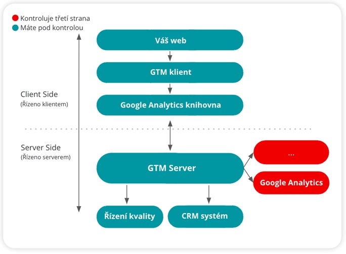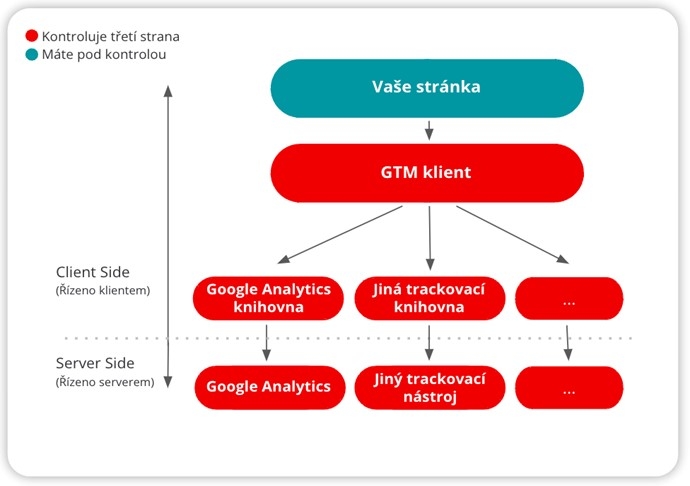 Na druhý zmíněný problém existuje celá řada řešení, jejichž vhodnou kombinací lze alespoň částečně problém konce cookies třetích stran vyřešit. Jedním z nich je implementace server-side měření webových stránek a aplikací pomocí Google Tag Manageru (dále jen GTM), kterému se bude věnovat tento článek.