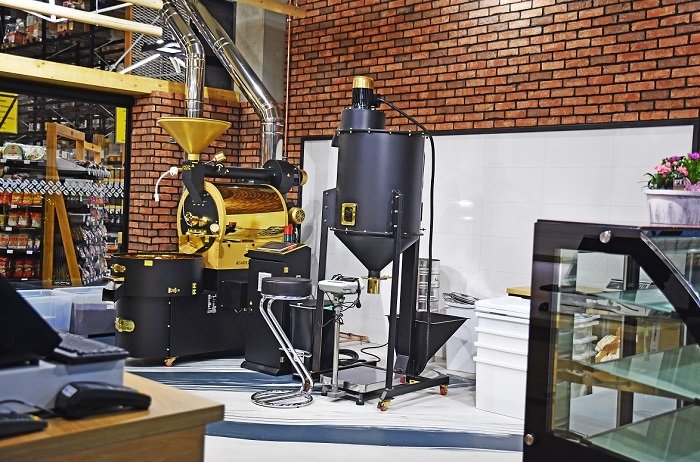 Druhou novinkou je vlastní pražírna kávy, která je umístěna přímo na prodejní ploše a kde zkušený personál upraží kávu na přání, dá ochutnat a pomůže s výběrem.