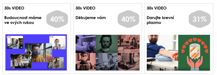 Kampaň tvořilo několik video spotů. Spot, který apeloval na zodpovědnost jednotlivců „Budoucnost máme ve svých rukou“, zaznamenalo 40 %. Stejné procento lidí zaznamenalo i děkovný spot. Necelá třetina (31 %) uvedla, že zaznamenala i spot, který vyzýval k darování krevní plazmy.