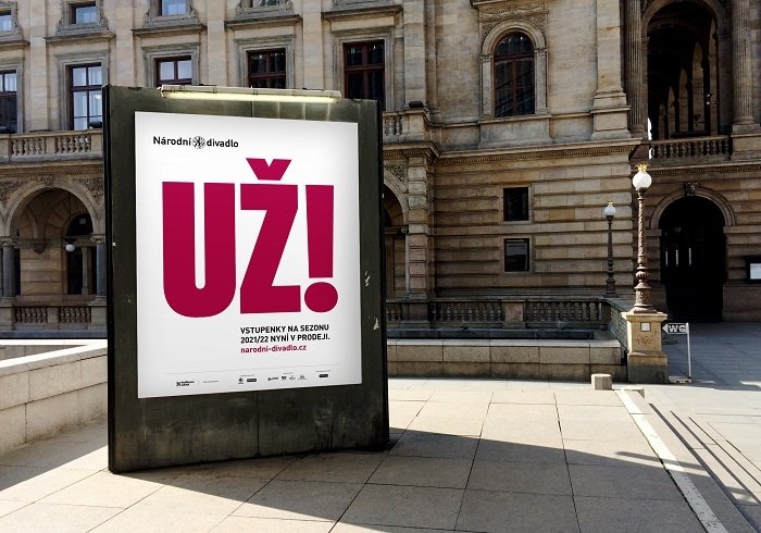 Reklamní kampaň k zahájení 139. sezony Národního divadla staví na výrazné typografické práci se slovem Už!. Na kampani pracovala agentura Touch Branding.