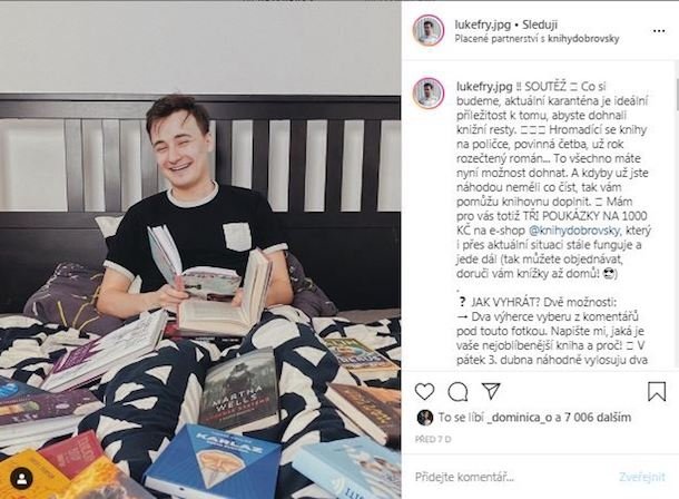 Knihy Dobrovský rovněž spolupracují s celou řadou influencerů, a to jak čistě cílených na literaturu, tak z řad herců a hereček s vysokým zásahem. Nedávno se tak například Jitka Nováčková, Mariana Prachařová, Elena Yababy, Roman Vojtek nebo Andrea Růžičková zapojili do online výzvy #knizniresty, jež nabádala lidi, aby během nouzového stavu přečetli knihy, které už dlouho odkládali. „Výborný ohlas mají ovšem i tradičnější formáty, jako naše e-shopové listy. Jedná se o B2C periodikum, které najdete exkluzivně pouze v balíčcích z našeho e-shopu,“ přibližuje Adam Pýcha.