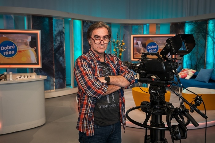 Prušinovského, který humorně vykresluje prostředí ranního pořadu ČT.