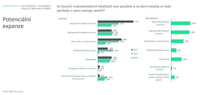 Z pohledu preferovaných lokalit pro expanzi jsou jednoznačně stále populární regionální obchodní centra s větší spádovou oblastí. Dlouhodobě také roste obliba retailových parků, a to i u maloobchodníků, kteří v minulosti tento typ nemovitostí nevyhledávali.