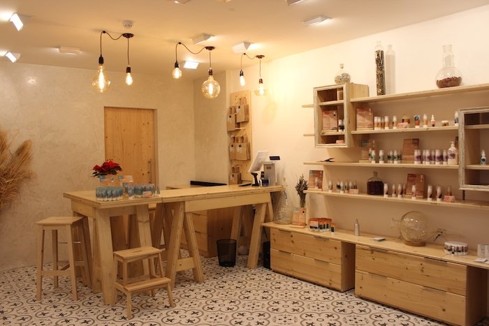 Prostor je zařízen dřevěnými policemi, kde jsou vystavěny všechny produkty z nabídky značky. Zákazníci si budou moci produkty vyzkoušet a také se poradit s prodejními konzultantky, které jim mohou odhalit typ pleti, jeho potřeby a navrhnou funkční kosmetiku na míru.