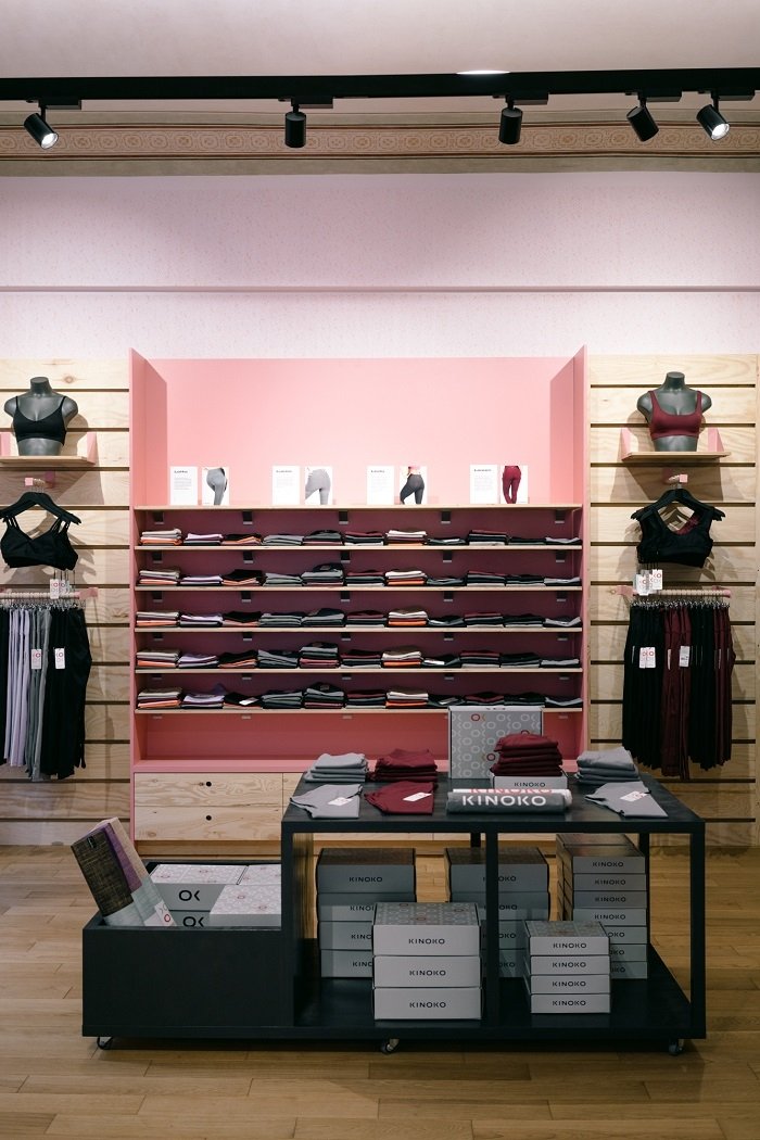 „Kromě nákupů zde plánujeme pořádat lekce jógy a tematické přednášky. V kabinkách se zrcadlovými stěnami si zákaznice mohou samy navolit typ osvětlení, zacvičit si na žebřinách nebo se protáhnout na podlaze se speciálním gumovým povrchem a vyzkoušet si Kinoko oblečení v praxi,” vysvětluje ředitelka značky Alžběta Václavů.