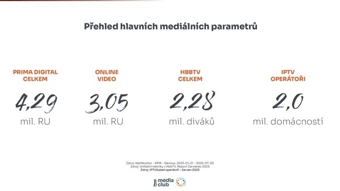 V online segmentu skupiny Prima meziročně Media Club posílil mimo video služby Prima+ také u obsahových a lifestyle magazínů, kde video views meziročně vzrostly o 73 %. Pro příští rok plánuje obchodní zastupitelství selektivně zdražovat u formátů, které jsou nejvíce žádané, a to o 5 až 20 %.