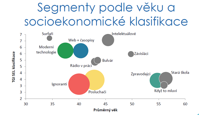 Představeny byly sociálně-politické segmenty, tedy rozdělení populace do kategorií podle preferencí v této oblasti. Tato segmentace má umožnit mediím lépe poznat svoji cílovou skupinu z pohledu témat, která jsou pro danou skupinu přitažlivá.