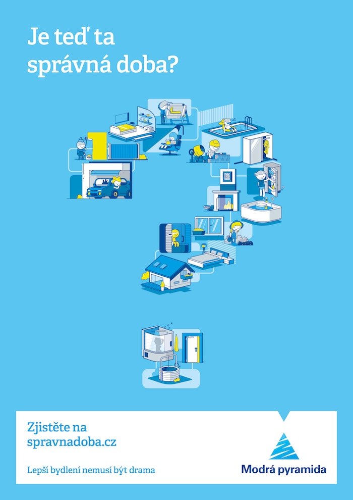 Za strategií a kreativou kampaně stojí agentura Brain One, obsah článků má na starosti Obsahová agentura. „Co se kreativní stránky týče, chtěli jsme být co nejjednodušší a maximálně vycházet z nové barevné palety a vizuálního stylu Modré pyramidy. Hlavním motivem je otazník vyskládaný ze stylizovaných ikonek znázorňujících všechny možné činnosti spojené se zlepšováním bydlení. Tuto cestu jsme volili i s ohledem na využití v online prostředí, kde hodně spoléháme na kratší animované formáty,” vysvětluje Marek Linhart, kreativní ředitel Brain One.