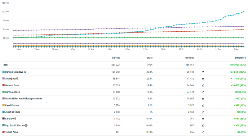 Největší podporu má Nerudová, nejaktivnější je Janeček
