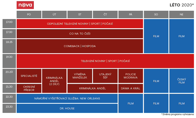 Televize Nova od pondělí 15. června nasadila své letní programové schéma. Na televizní obrazovky vrací reality show Utajený šéf. Nabízet ji bude každý čtvrtek od 20:20. Utajený šéf doplní přes léto reality show Výměna manželek, která se vysílá ve středu večer.