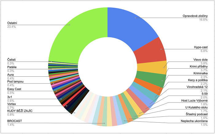 Veřejnost rozhodovala svými hlasy o umístění podcastů v hlavní kategorii Podcast roku, ze které vzešli vítězové v celkem devíti tematických kategoriích. V nich se na stupně vítězů dostaly podcasty Host Lucie Výborné, Kriminálka, Brain We Are CZ, Hodina dějepichu, Kudy běží zajíc, Ve vatě, Hype-Cast a Vlevo dole.